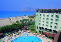 расположен в 120 км от аэропорта г. Анталья, в 2 км от центра г. Аланья, в 50 м через дорогу от собственного пляжа по подземному переходу.