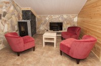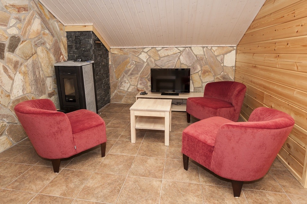 CASA ANTI (166 м2, 3 спальни, на 10 чел).В коттедже 2012 года постройки: 3 спальни (1 на нижнем этаже и 2 на втором этаже, спальни наверху разделены занавеской на 2 части) с десятью односпальными кроватями, камин, телевизор (кабельное телевидение), радио/CD-проигрыватель, DVD (на втором этаже), Bluray (на первом этаже),беспроводной интернет, кухня (электрическая плита и духовка, посудомоечная машина, микроволновая печь, кофеварка, электрический чайник, тостер, холодильник, морозильник), 2 туалета (один из них совмещен с душем),электрическая сауна (2 душа в душевой), стиральная машина, 2 сушильных шкафа для одежды, гладильные приспособления,гараж (максимальная высота 205см, пульт дистанционного управления), розетка для подогрева двигателя автомобиля.