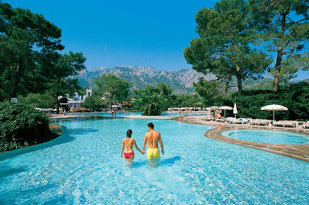 расположен в 45 км от аэропорта г. Анталья, в 5 км от г. Кемер, на берегу моря.