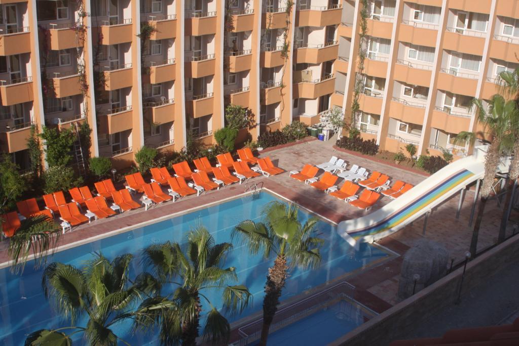 расположен в 120 км от аэропорта г. Анталья, в 12 км от центра г. Аланья, в поселке Конаклы, в 100 м через дорогу от собственного пляжа.
