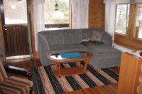 1-й этаж: кухня и гостиная (раскладной диван на 2 чел.), туалет, душ и сауна.