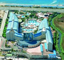 расположен в 80 км от аэропорта г. Анталья, в 24 км от г. Сиде, в 50 м через дорогу от собственного пляжа по подземному переходу.