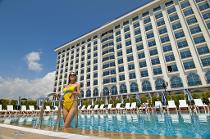 расположен в 13 км от аэропорта Антальи, в 3 км от центра города, на берегу моря (подземный переход к пляжу).