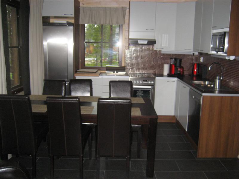 JANTITUPA (98 м2, 3 спальни, на 10 чел.). В апартаментах 2007 года постройки: 3 спальни(на первом этаже 2 спальни: в одной двухспальная кровать, в другой - две односпальные кровати, на втором этаже 1 спальня с двумя двухъярусными двухспальными кроватями), гостинная(диван, камин, радио-CD-проигрыватель, телевизор, DVD), совмещенная с кухней (электрическая плита, посудомоечная машина, микроволновая печь, холодильник), 2 туалета, электрическая сауна, стиральная машина, сушильный шкаф, утюг.