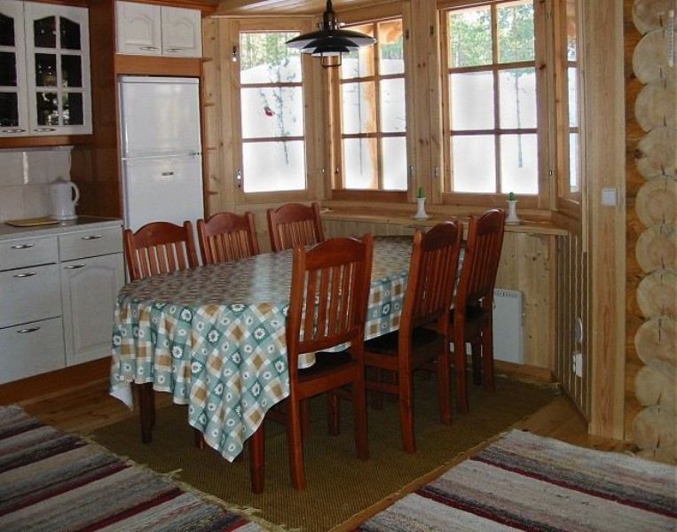 Описание: Коттедж двухэтажный, расположен в 50 м от берега озера Сайма. На первом этаже: спальня (2 кровати); гостиная (раскладывающаяся софа, телевизор, камин); кухонный уголок (электрическая плита, холодильник, микроволновая печь, кофеварка, посудомоечная машина, стиральная машина); сауна, душевая, туалет. На втором этаже: спальня (двуспальная кровать + односпальная кровать), маленькая гостиная, балкон. В стоимость входит весельная лодка. Ближайшие соседи – 200 м, расстояние до ближайшего ресторана – 2 км, до магазина – 15 км.