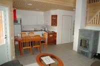 KASUKKATIE 8A (91 м2, 2 спальни, на 4+4 чел). В апартаментах 2006 года постройки: 2 спальни (по 2 спальных места в каждой), гостиная (раскладывающийся диван, камин, телевизор, DVD или VHS, радио), совмещенная с кухней (электроплита, холодильник, посудомоечная и стиральная машины, микроволновая печь, кофеварка), лофт (2 дополнительных спальных места: кровати или матрацы), душ, туалет, электрическая сауна, сушильный шкаф, утюг. Расстояние до ближайшего ресторана – 500 м, до магазина - 500 м, до склонов - 1 км.