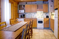Просторная кухня/гостиная с видом на озеро, 2 спальни на нижнем этаже, наверху - спальный альков для 2, открытый лофт (доп. кровати), телевизор, DVD, камин, 2 туалета, 2 душа в ванной, шкаф для сушки одежды, стиральная машина, утюг, электроплита, холодильник/морозильник, посудомоечная машина, микроволновая печь, кофеварка, сауна.