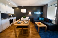Новые, отлично оборудованные апартаменты с прямым выходом к лыжным трассам имеют потрясающий вид из окна на горные склоны и окружающий ландшафт. Варианты размещения в апартаментах Levi Chalet, которые примыкают к отелю, представляют собой номера с одной спальней (на 2+3 человек) и номера с двумя спальнями (на 4+2 человек) с возможностью установки дополнительных спальных мест типа двухъярусной кровати или диван-кровати.