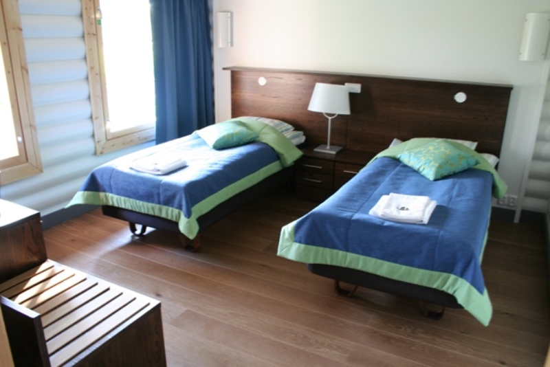 Семейный номер: 40 м2, 2 кровати в спальне, раскладывающийся диван в гостиной (двери нет), камин, телевизор, музыкальный центр, фен, душ, туалет.