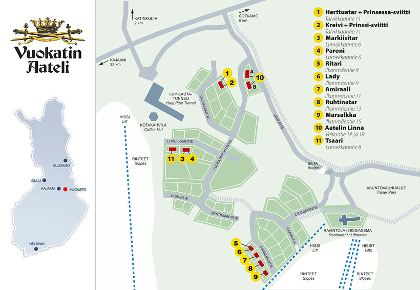 Вуокатти - 700 м; Соткамо - 7 км; Каяни - 32 км