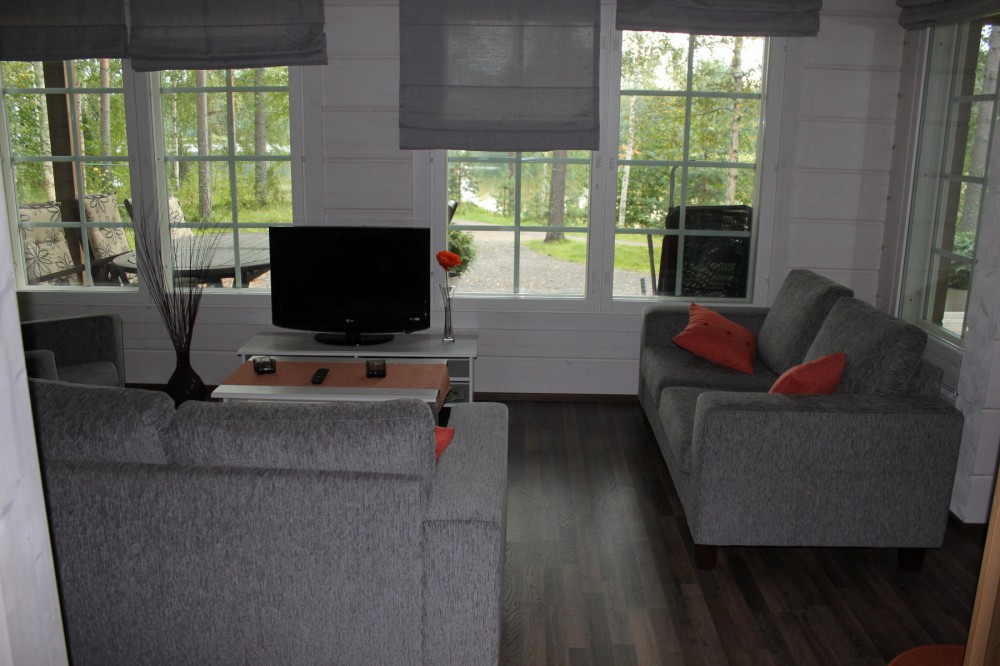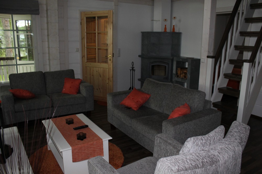 Новый (2011 г.) коттедж «Nurmaa» - «Loisti» (2 спальни + лофт, на 4+2 человек): 2 спальни (в одной спальне двуспальная кровать) с телевизором, гостиная (телевизор, камин, 2 дивана), оснащенная кухня, сауна, душ, туалет, стиральная машина, лофт (2 кровати) с крутой лестницей.