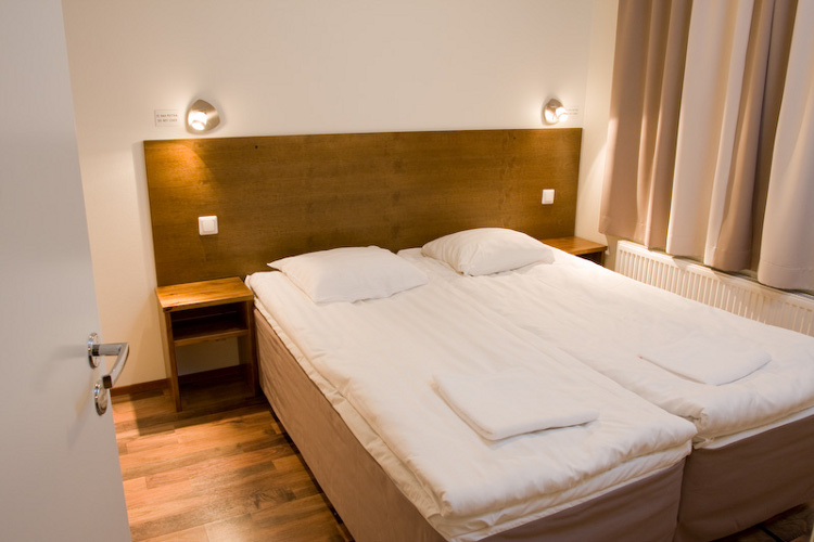 В апартаменте PyhaSuites (55 кв.м.) имеется 2 стандартные спальни (2 кровати по 80 см шириной каждая), альков (двухярусная кровать, нижняя 120 см шириной, верхняя 80 см шириной), кухня, отдельный туалет, сауна, душ и балкон. Всего в апартаменте 6+2 спальных мест (диван в гостиной может быть использован как дополнительное спальное место).