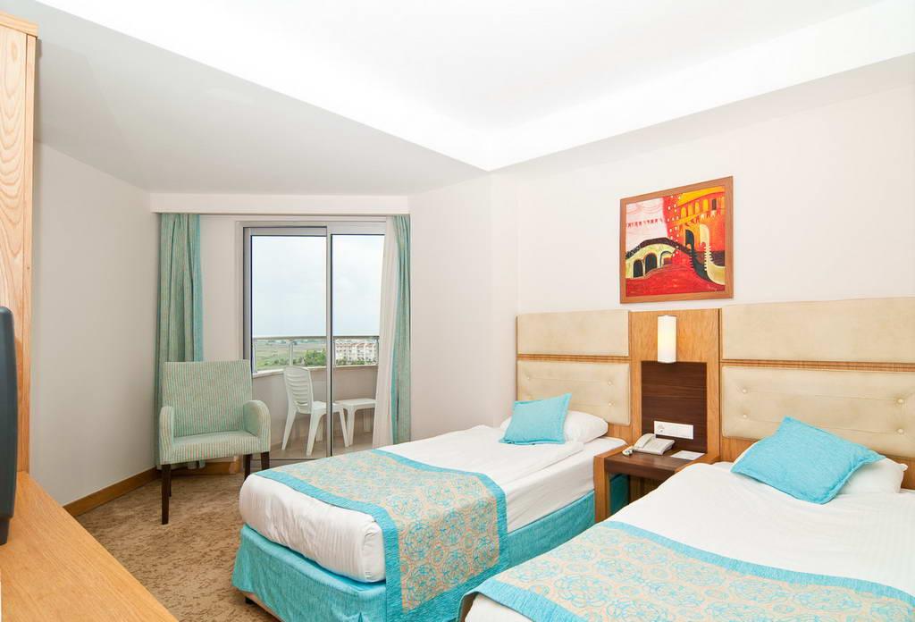 расположен в 15 км от аэропорта Антальи, в 20 км от центра города, на берегу моря.