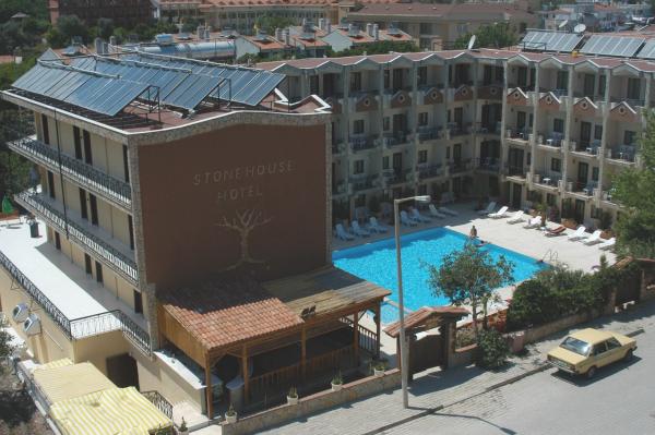 расположен в 50 км от аэропорта г. Анталия, в г. Кемер, в 750 м через дорогу от городского пляжа.