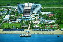 расположен в 10 км от аэропорта Антальи, в 15 км от центра города, на берегу моря.