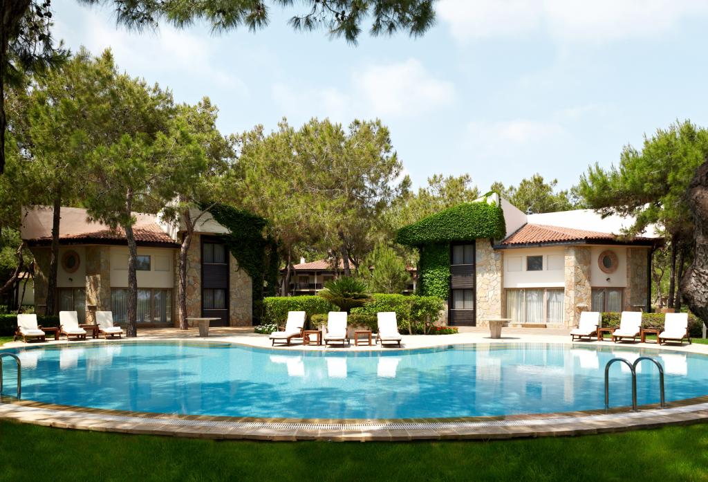 расположен в 40 км от аэропорта и в 50 км от центра г. Анталья, в 5 км от поселка Белек, на берегу моря.
